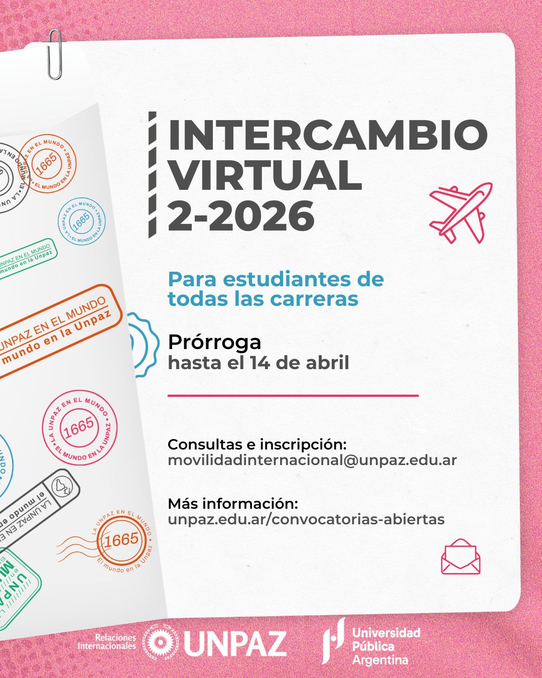 Consultas e inscripción: movilidadinternacional@unpaz.edu.ar