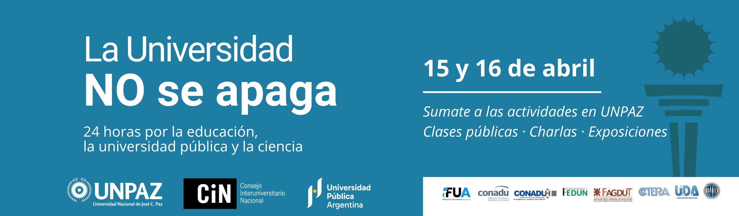 La UNPAZ participará de la jornada nacional “La Universidad no se apaga”, una iniciativa impulsada por el sistema universitario público argentino que se desarrollará entre el miércoles 15 y el jueves 16 de abril.