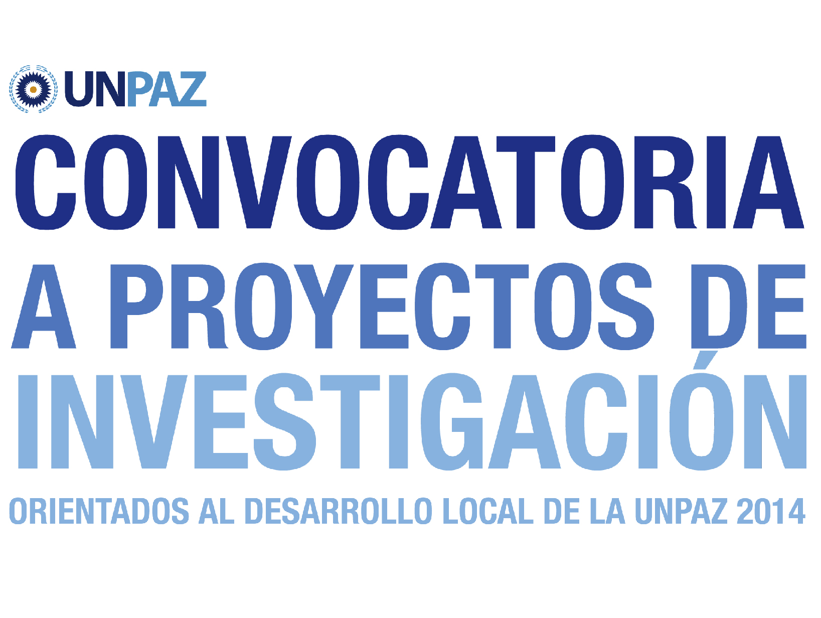 Nuestra meta para el año 2015 es crear las condiciones para que nuestra universidad desarrolle conocimientos profundamente articulados con las demandas del contexto social, que logren aportar soluciones sobre los problemas que la propia comunidad identifique y que orienten la innovación y el desarrollo sostenible, tanto local como de la región. Esta convocatoria significa un primer paso en una serie de acciones y estrategias tendientes a la consolidación de la UNPAZ en el espacio de producción e intercambio académico nacional y regional.