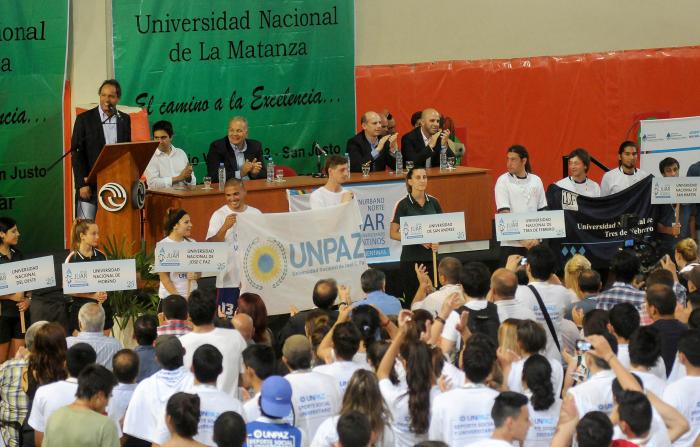 La apertura oficial de los juegos se desarrolló hacia el final de la primera jornada en el Salón de Usos Múltiples y microestadio de la UNLAM y contó con la presencia del Gobernador de la provincia de Buenos Aires Daniel Scioli y el Rector de la UNLAM Daniel Martínez, además de otras autoridades nacionales, provinciales y universitarias.