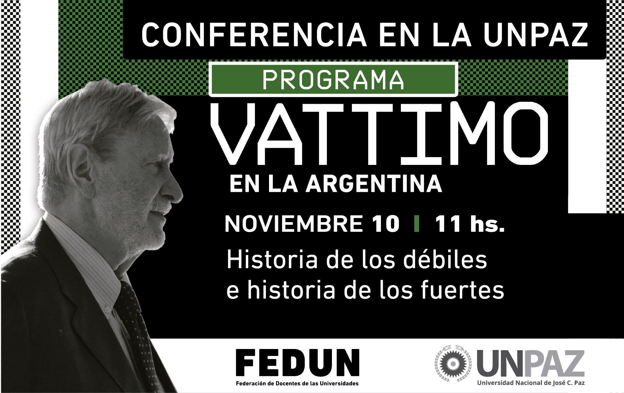 La UNPAZ invita a toda la comunidad universitaria e interesados a participar de la conferencia titulada “Historia de los débiles e Historia de los fuertes” que desarrollará el Dr. Gianni Vattimo el lunes 10 de noviembre.