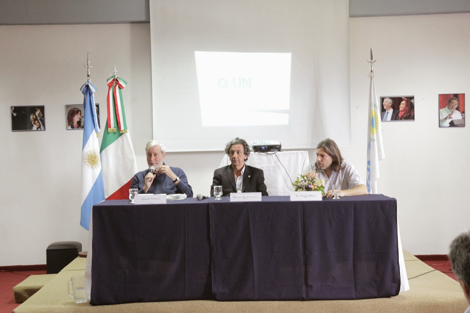La apertura del encuentro estuvo a cargo del rector Trinchero quien agradeció la presencia del catedrático y manifestó: “Vattimo introdujo temas de mucho interés para nosotros, para pensar la política y la ciencia en América Latina”.